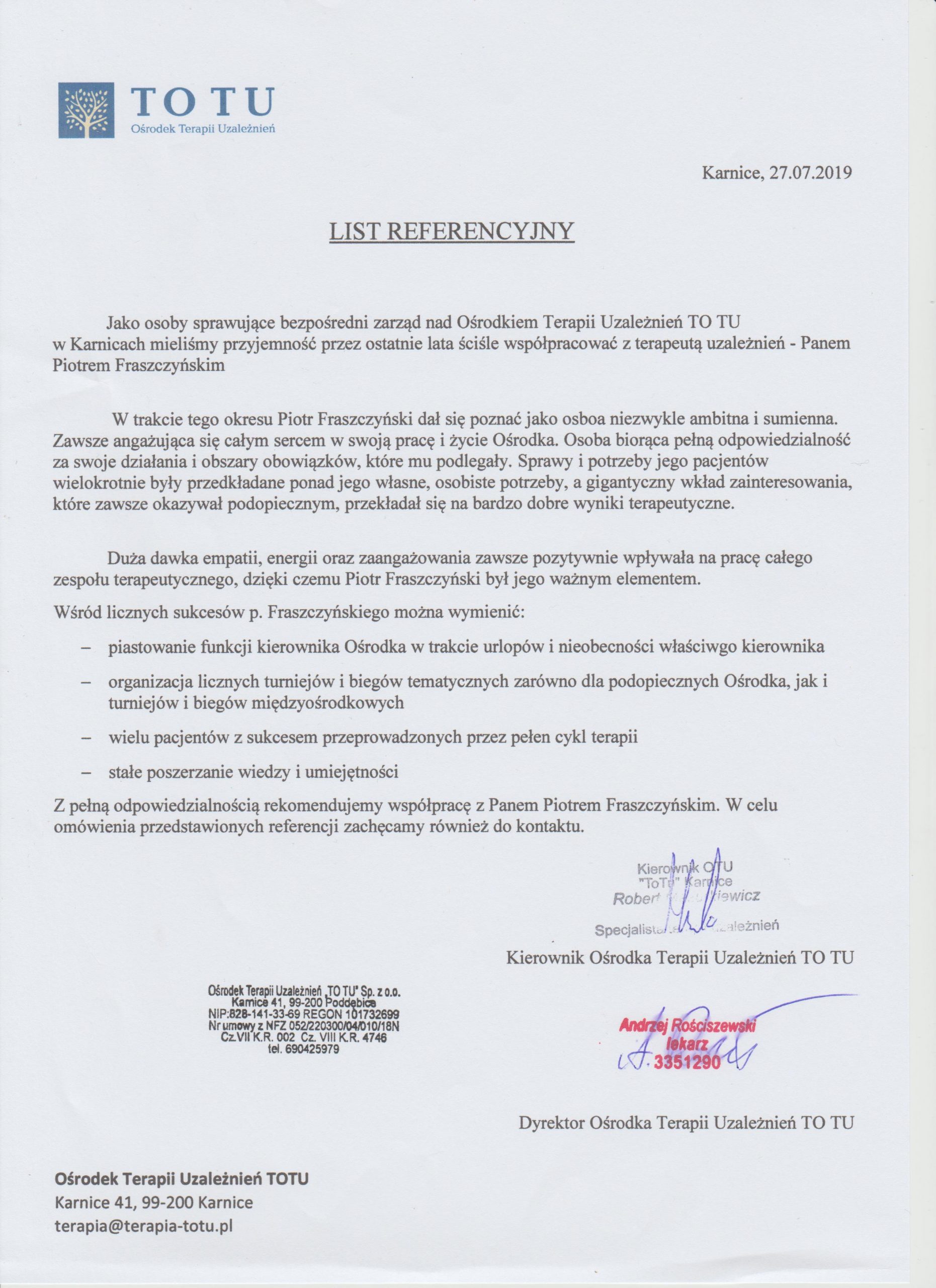 - w Stowarzyszeniu Monar, gdzie pełniłem funkcję Terapeuty Ulicznego