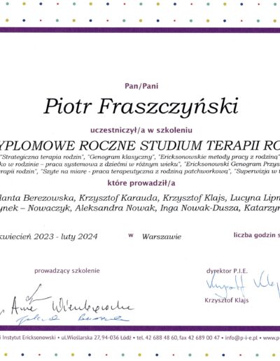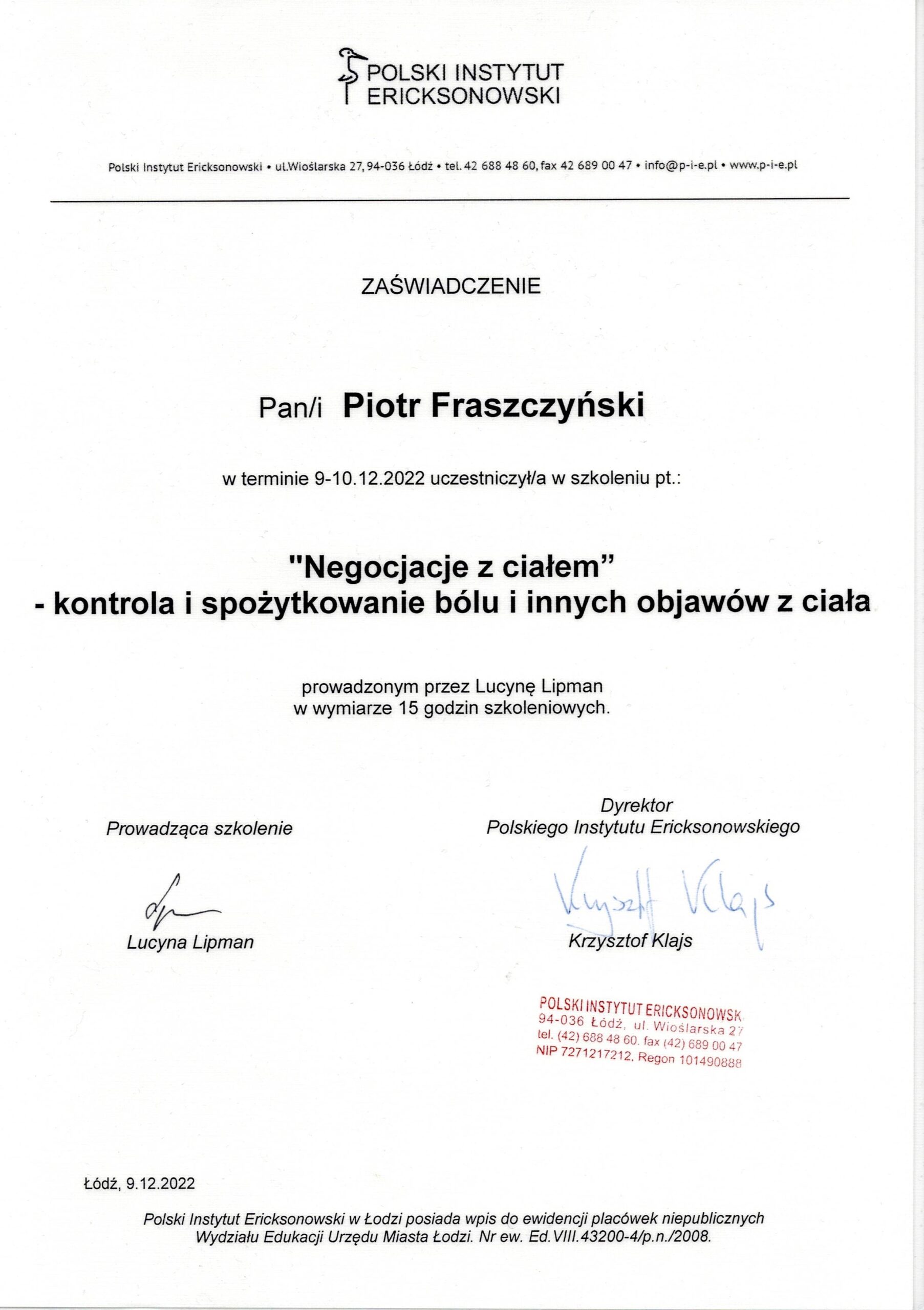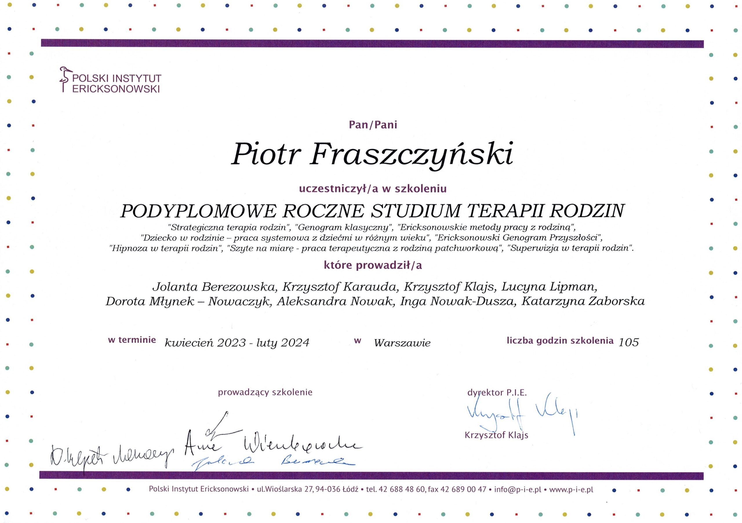 Jeśli chciałbyś/chciałabyś zgłosić się na terapię do Piotra Fraszczyńskiego, możesz zrobić to przez formularz kontaktowy.